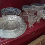 Ev.č. 1040/5 Cena : 3000,- Kč. Sada skla 6 ks. Pavel Pánek Cibulák Rudolfova huť 80 léta. Tác 28 cm., Mísa 22 cm., popelník 16 cm., miska nožka 12 cm., grogovka v/š. 15/5,5 cm., grogovka V/š. 12/7 cm. bez poškození. Vše viz foto.