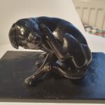 Ev.č. 1041 Cena : 6500,- Kč. Těžitko sedícího psa (Rottweiler ??) drbajícího se zadní tlapou za uchem. Jedná se o barvený litinový nebo železný odlitek o rozměru postavce 14 x 8 cm. Výška cca. 5.5 cm. Takováto vzácně dochovaná těžítka s minimálními odlištnostmi se vyráběla 16-17 století v jižním Německu. VšePřečtěte si více o Těžítko sedící pes Rottweiler – litina/železo[…]