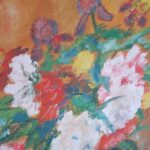 Ev.č. 1051 Cena 45000,- Kč. Typické zátiší s kyticí v modrém džáně od Jana Slavíčka (1900-1970). Olej nebo kombinovaná technika na kartonu 55×40 cm. Vč. rámu 63×48 cm. Rám mírně poškozen. Signovano PD. Obraz pochází z pozůstalosti sběratele.