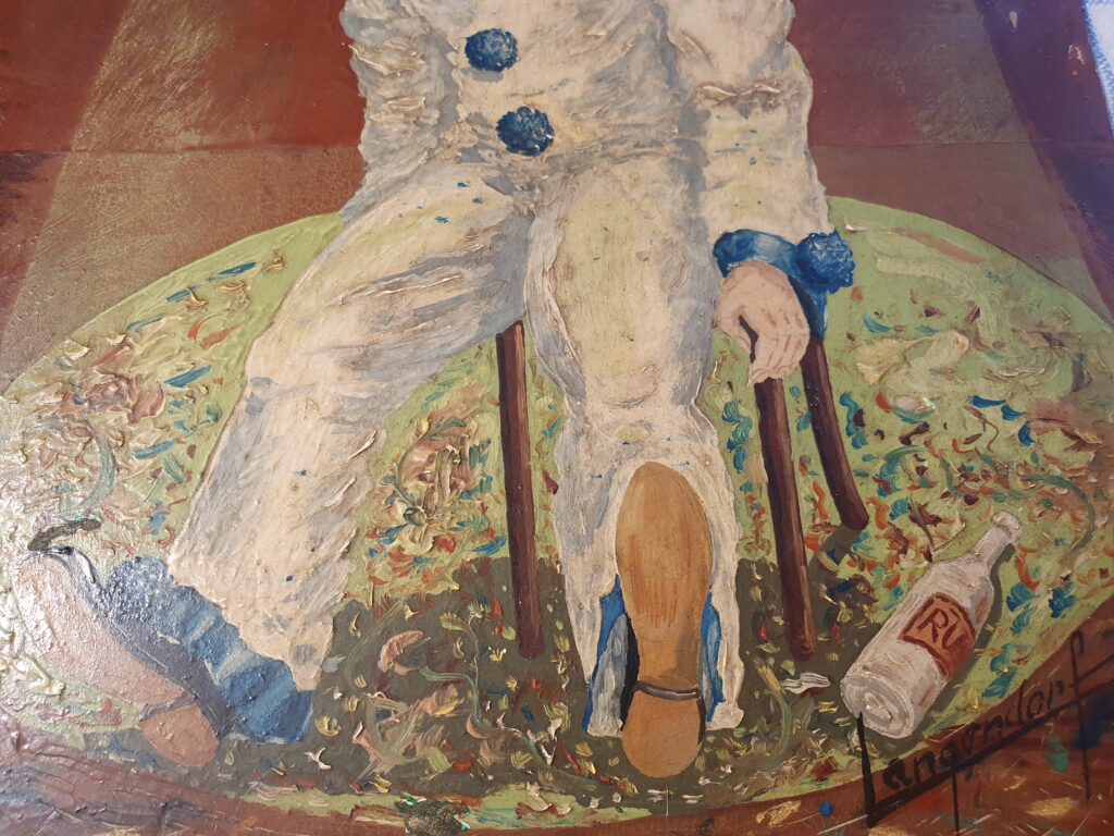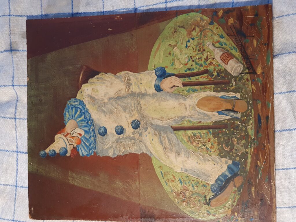 “Unavený” Klaun – olej na desce (Masonit/Sololit) 23 x 19 cm. Signováno pseudonymem Langendorf – Dlouhá Loučka na Moravě. Obec kde se Emil Czech narodil r. 1862 a i zemřel r.1929. S ohledem na použitou desku předpokládáme pozdní dílo v poročilém věku umělce. Autor pro, ve své době, velice kontroverzní námět opilého klauna s flaškou rumu použil pseudonym. Styl písma signace odpovídá, technika provedení malby též. Prohlídka díla možná po dohodě v Bechyni nebo Praze.